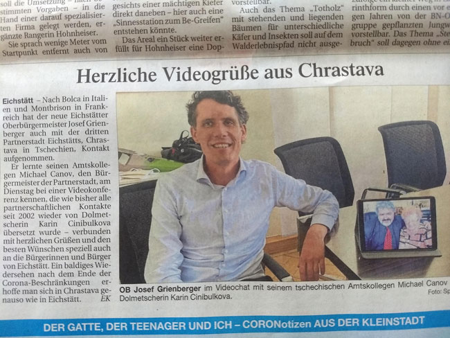 uskutečnil za pomoci skypu videohovor s novým primátorem Eichstättu Josefem