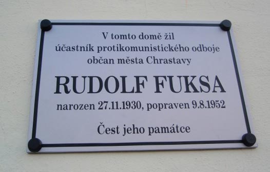 Dne 13. 12. 2008 ve 14:00 se sešlo asi padesát lidí, aby uctili památku účastníka protikomunistického odboje, držitele Vyznamenání Zlaté lipy in memoriam Rudolfa Fuksy. Po mém krátkém přivítaní a rekapitulaci života a smrti Rudolfa Fuksy přišla řada na pana starostu města Chrastavy Michaela Canova a na jeho proslov. Po té jsem spolu s ním desku odhalil. Mimo jiné byla přítomna i Česká televize, která následně v hlavních Událostech na ČT1 odvysílala reportáž. Mé velké poděkování patří manželům Řehákovým - majitelům domu, kde Rudolf Fuksa žil, Ivanu Vydrovi za zhotovení desky, Jiřímu a Otakarovi Starhoňovým za pomoc při instalaci desky a starostovi Ing. Michaelu Canovovi za všestrannou podporu. Děkuji i mé rodině a mým přátelům bez jejichž podpory by se mi bojovalo o poznání hůře. PS: Když se ohlížím za mou několikaměsíční prací, ujišťuji se, že odpůrci desky vlastně nechtěně udělali Rudolfovi Fuksovi i mne reklamu, o které se nikomu ani nesnilo. Jak trefně poznamenal pan starosta ve svém projevu, neexistuje v současnosti slavnější Chrastavák než-li hrdina, bojovník za demokracii a svobodu – můj prastrýc RUDOLF FUKSA. Klaním se před jeho památkou a nesmírně si cením toho, že mým dětem budu moci dávat za vzor přímého rodinného příslušníka.